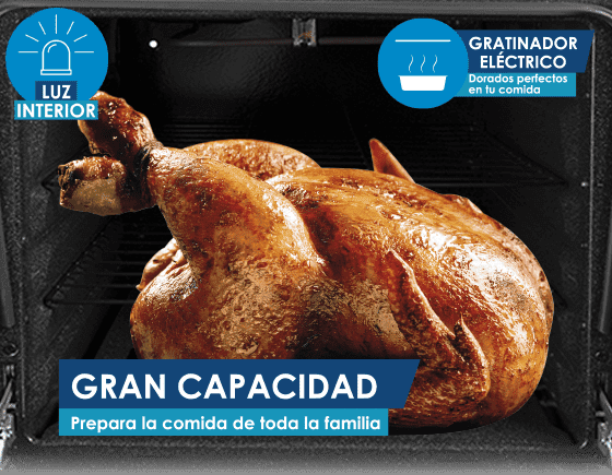 Dale un toque dorado a tus comidas con el gratinador. Nuestros hornos cuentan con gran capacidad, prepara deliciosas recetas para todos de forma fácil y rápida. Cuenta con dos parrillas en alambrón porcelanizado. Una (1) bandeja para calienta platos en lámina esmaltada.