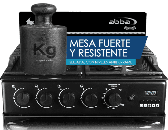 Estufa de piso con horno Abba Majestic | AT 203-5 GT TC | Gas | 4 Puestos | Gratinador | Vidrio Negro