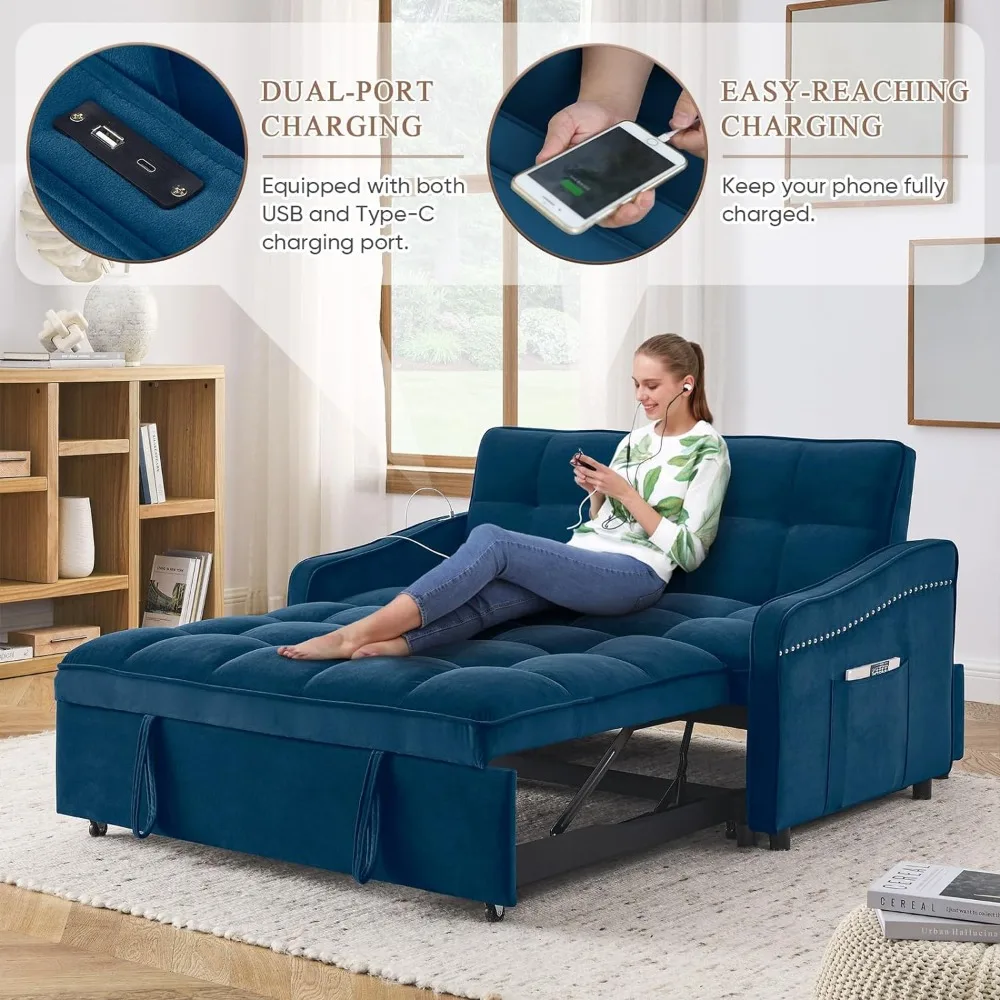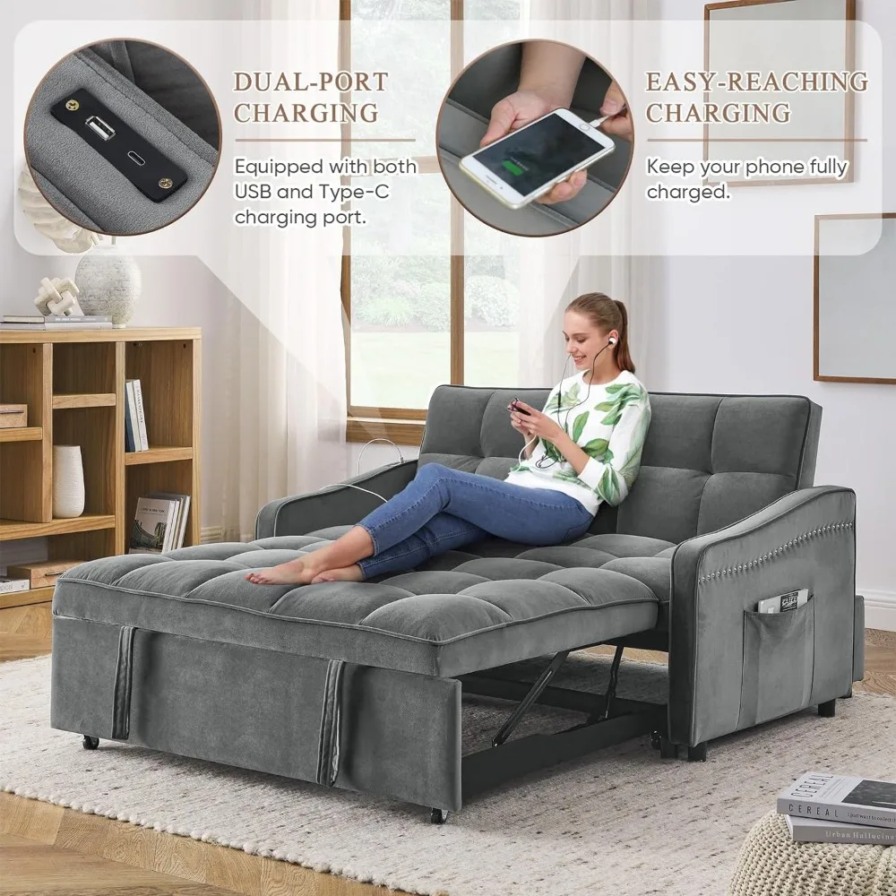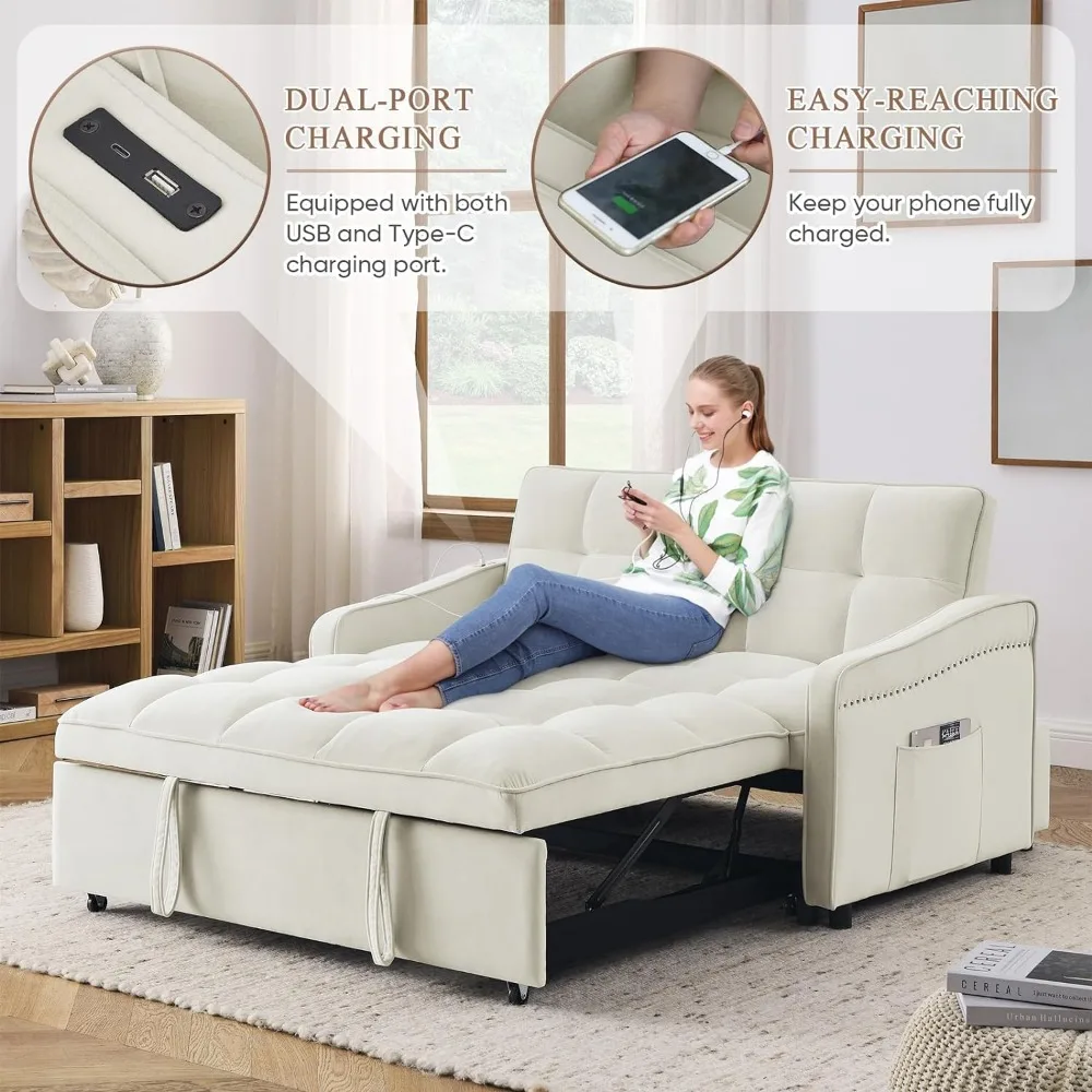 - 【Upgraded Dual-port Charging】Our convertible sofa is equipped with two ports, USB and Type C, which are compatible with two different port devices and can quickly charge 2 devices at a time. Moreover, compared to other designs where the USB is located on the side of the armrest, our interface is on the armrest, close to the backrest, keeping your phone fully charged while you enjoy relaxation.