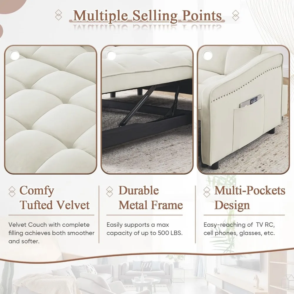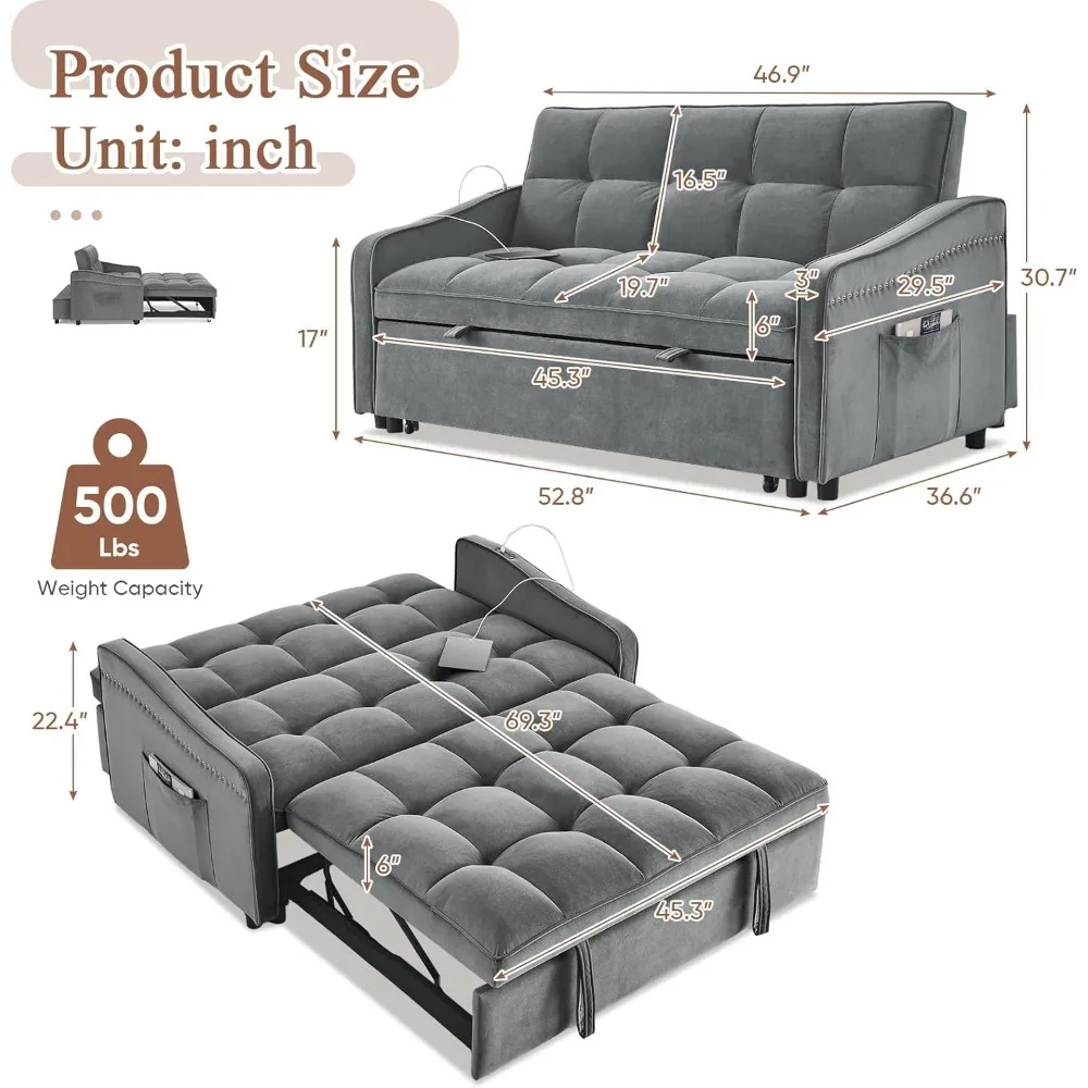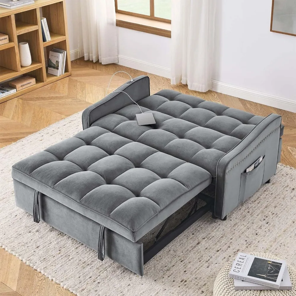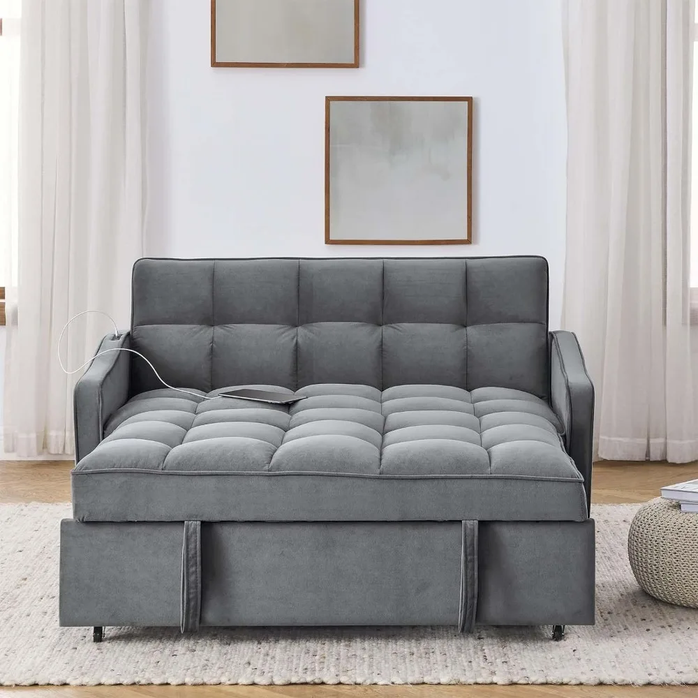 - 【Upgraded Dual-port Charging】Our convertible sofa is equipped with two ports, USB and Type C, which are compatible with two different port devices and can quickly charge 2 devices at a time. Moreover, compared to other designs where the USB is located on the side of the armrest, our interface is on the armrest, close to the backrest, keeping your phone fully charged while you enjoy relaxation.