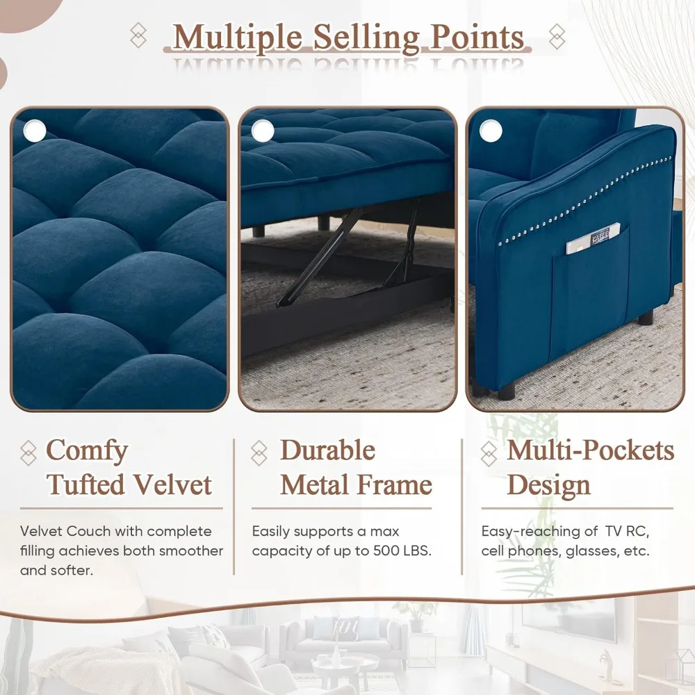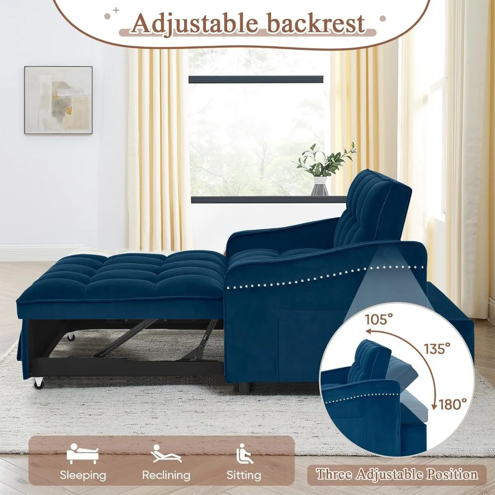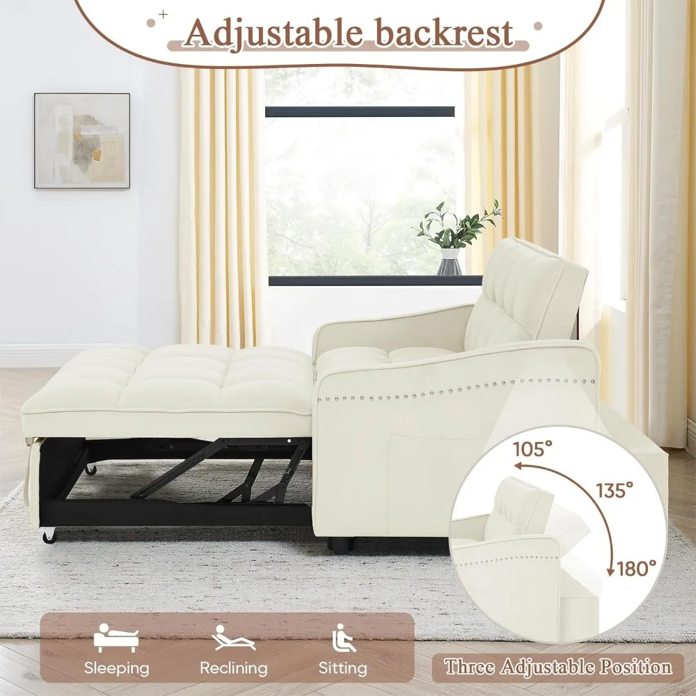 - 【3-Levels Adjustable Backrest】The sofa bed's adjustable backrest can be converted to 3 different angles, from 105° to 180°. Allowing you to sit or lie and find the most comfortable position. Featuring a side-pocket design, keep your TV remote, phone, magazines, keys, glasses, or that book you want to finish within easy reach.