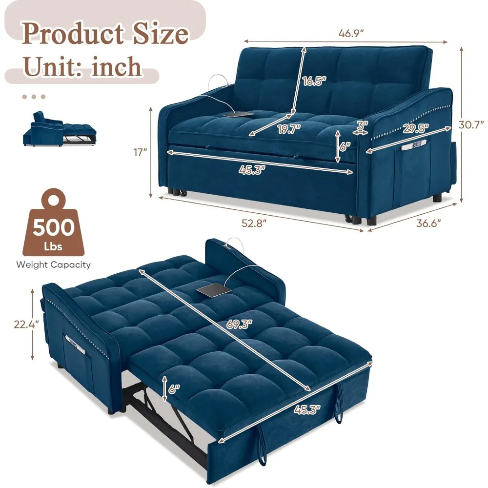 - As a loveseat: 36.6"D*52.8"W*30.7"H. As a sleeper bed: 69.3"D*45.3"W*22.4"H.