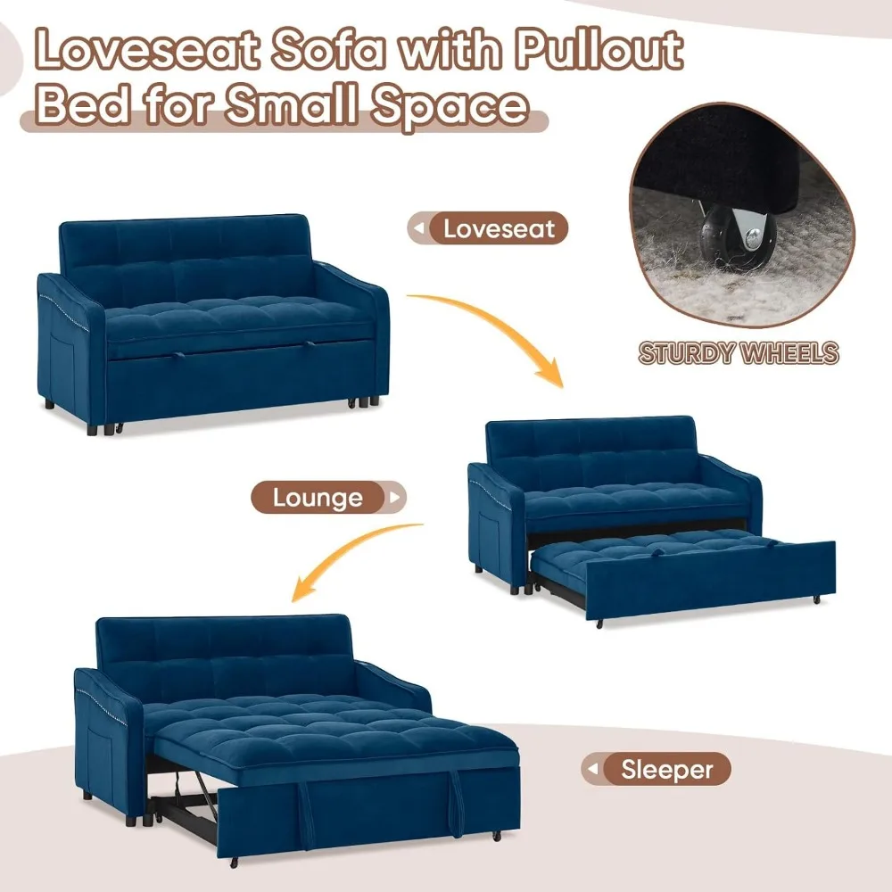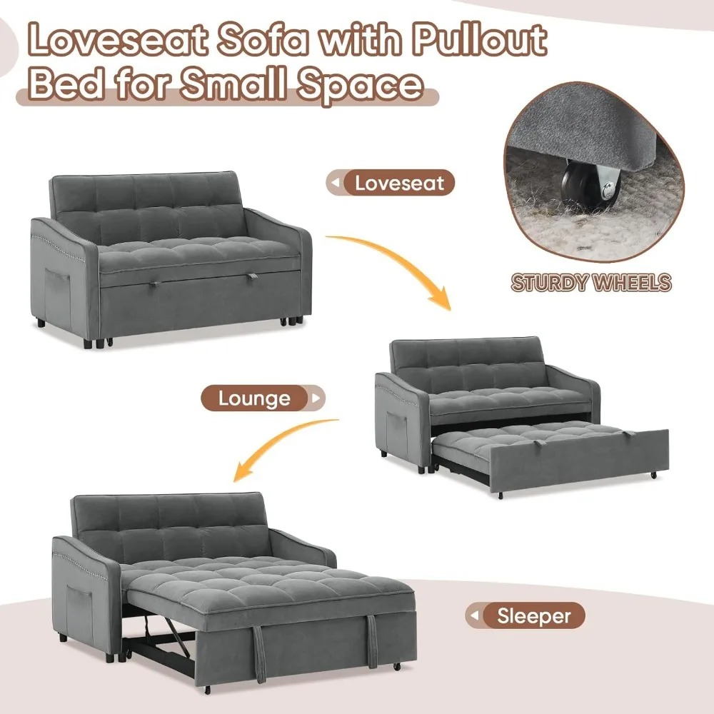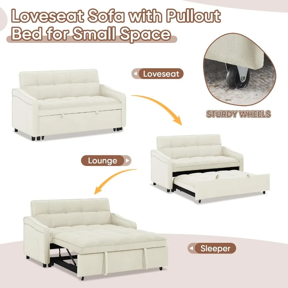 - 【Convertible Pull-out Sofa Bed】The sofa reinforced with plywood and metal frame comes with a pull-out bed. It can be easily converted into a bed for temporary friends staying over by pulling it out with 2 auxiliary hand straps and wheels. The stable and solid structure can withstand 500LBS, so you can lie down with confidence.