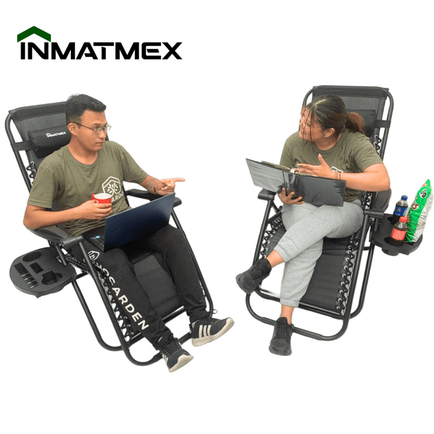 Camastro reclinable gravedad cero, ideal para jardines, terrazas, exteriores. Es plegable, reclinable, cuenta con una almohadilla para la cabeza. Estructura de acero resistente a la corrosión.