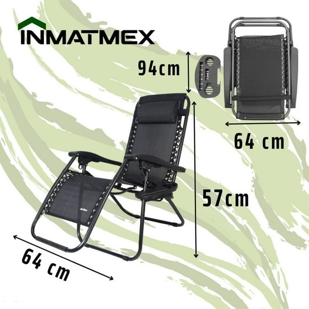 Producto que ofrecemos en esta publicación: Combo de 2 camas silla gravedad cero Peso de la silla Medidas del camastro extendido Ancho 61 cm Largo 160 cm Altura 57 cm Medidas del camastro doblado Ancho 61 cm Largo 94 cm