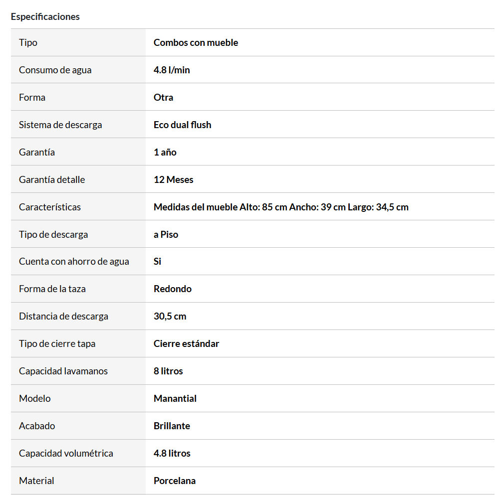 Combo de Baño: Sanitario Manantial Pro + Mueble Aluvia + Grifería Nogal + Accesorios (Jabonera, percha, toallero argolla, portarrollo) Corona